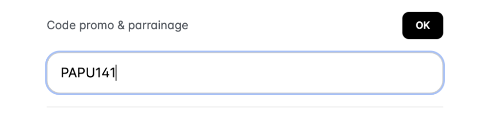 - Saisissez le code promo Le Fourgon « PAPU141 » dans le champ « Code promo & parrainage »